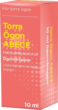 ABECE Torra Ögon är smörjande och återfuktande ögondroppar som motverkar och lindrar torrhet och känslan av trötta ögon. Dropparna innehåller inget konserveringsmedel och kan även användas när du bär kontaktlinser. ABECE Torra Ögon lämpar sig för lätta besvär som uppstår då och då. Hållbarhet 3 månader efter öppnande. Från 18 år. 10 ml.
