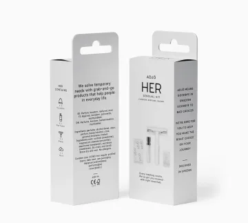 ADJÖ HER Sensual kit är ett litet diskret kit som du enkelt kan ha med i fickan eller väskan för att alltid ha det mest nödvändiga nära till hands. Dosan innehåller en liten parfym (1.5 ml), en rakhyvel, en kondom och en minttablett.