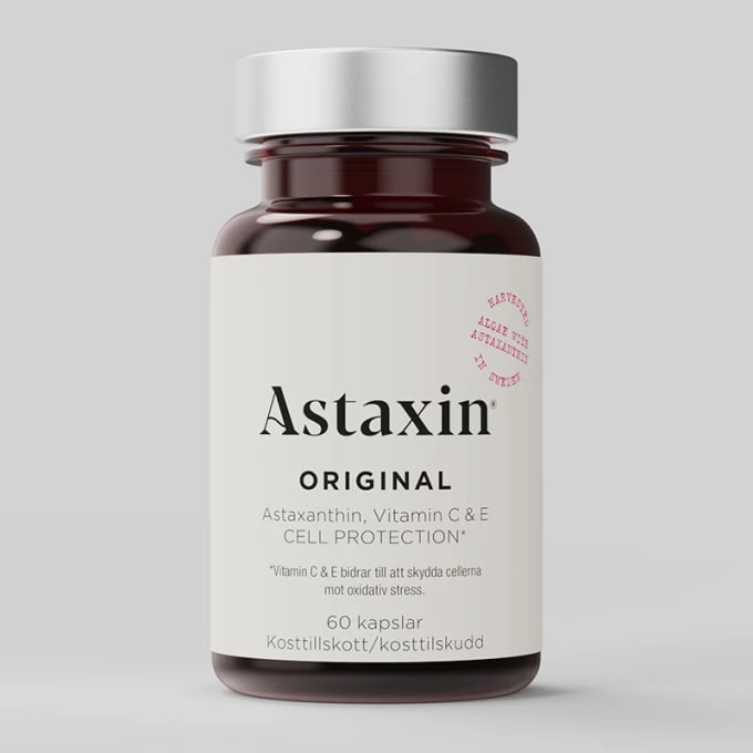 Astaxin är ett kosttillskott som innehåller det algbaserade ämnet astaxanthin samt antioxidanterna vitamin C och E. Vitamin C och E skyddar kroppens celler mot oxidativ stress. Vitamin C bidrar även till immunsystemets normala funktion och till att reducera trötthet och utmattning. Astaxanthin produceras av svenskodlade mikroalgen Haematococcus pluvialis. Algen odlas i AstaReals anläggning i Stockholms skärgård och bygger på mer än 30 års svensk forskning. 60 kapslar.