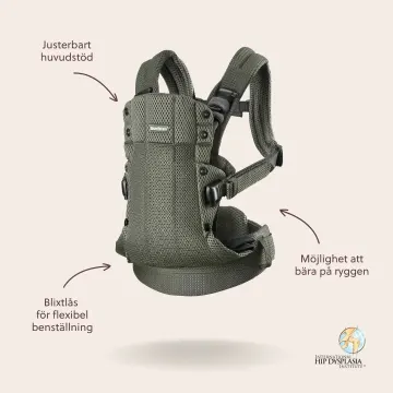BabyBjörn Bärsele Harmony är en mjuk och flexibel bärsele som är ergonomisk både för barn och förälder. Lättanvänd modell som enkelt tas på och av, väger lite och är smidig att packa ned i barnvagnen eller skötväskan. Bärselen har ett tryckavlastande midjebälte, vadderade axelband och stöd för ryggen, vilket gör att selen känns mycket bekväm även när du bär barnet längre stunder. Med BabyBjörn Harmony kan du bära barnet i fyra olika bärpositioner: nyfödd, inåtvänd, framåtvänd och på ryggen. Bärselen är ergonomisk och godkänd av International Hip Dysplasia Institute (IHDI), vilket innebär att det är en höftvänlig bärsele som ger rätt stöd för barnet. Tillverkad i 3D-mesh som ger ett extra mjukt och flexibelt tyg som andas och släpper ut överskottsvärme. Tyget formar sig runt bebisen och ger en känsla av omslutande och närhet.