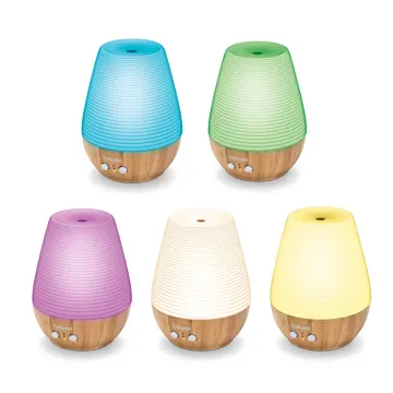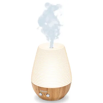 Beurer LA40 Aromadiffusor låter dig doftsätta ditt hem med aromatiska oljor. Stilren design med fem ljusinställningar i olika harmoniska färger. Avger en mikrofin ultraljudsdimma och är dessutom tyst och energisparande. Lämplig för rumsdoft med vattenlösliga oljor, anpassad för rum upp till 20kvm. Tillverkad i porslin och bambu. Tankstorlek 180ml och automatisk avstängning när vattnet tar slut. Timer med 1, 3, eller 7 timmar samt kontinuerlig drift.