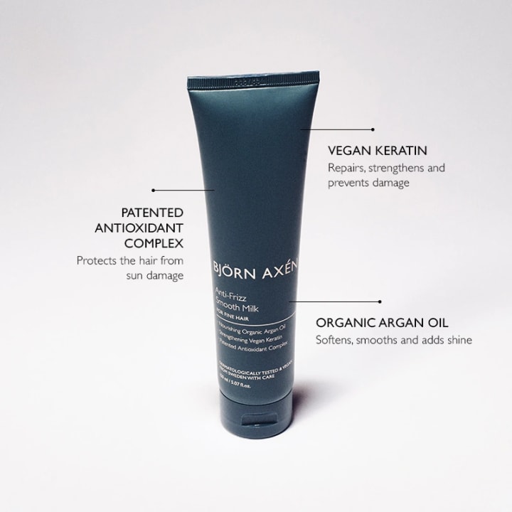 Björn Axén Anti-Frizz Smooth Milk är en mjukgörande och utslätande leave-in stylingkräm som minskar frissighet utan att tynga ned håret. Berikad med ekologisk arganolja och veganskt keratin som verkar stärkande, näringsgivande och glansgivande. Innehåller även ett patenterat antioxidantkomplex som verkar stärkande och skyddande. Håret lämnas mjukt och lent med naturlig glans. Med doft av bergamott, jasmin och vanilj. Passar fint hår. Dermatologiskt testad och vegansk. 150 ml.