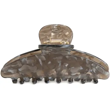 ByBarb Hårklämma Grace Gråmelerad är en mellanstor och skonsam hårklämma som håller både långt och det lite kortare håret på plats med sitt kraftiga grepp. Stark fjäder som håller upp håret under lång tid och med mjuka kanter som inte sliter på håret. Tillverkad i plast som är gjord av cellulosaacetat som baseras på naturliga råvaror. Designad i snygga linjer som följer huvudets form. Storlek: 9,9 cm x 4,4 cm.