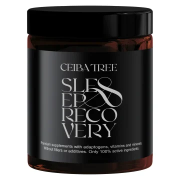 Ceiba Tree Sleep & Recovery Glasburk är ett kosttillskott med bland annat ashwagandha. Kosttillskottet innehåller ashwagandha, reishi, schisandra, humle och kamomill. Den innehåller även magnesium, vitamin B6, selen och inositol. Magnesium och vitamin B6 bidrar till att minska trötthet och utmattning. Ashwagandha kan bidra till avslappning och fysiskt och mentalt välbefinnande. Helt utan utfyllnadsmedel eller tillsatser. 60 kapslar.