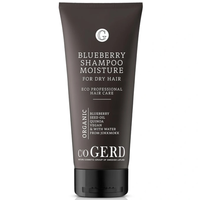C/o Gerd Blueberry Shampoo är ett återfuktande schampo för torrt hår. Mild formula med blåbärsfröolja som är rik på e-vitamin och antioxidanter. Innehåller extrakt från quinoa som hjälper till att binda fukt i håret. Ger ett härligt lödder och lämnar håret rent och återfuktat, med en fräsch doft av rosmarin och rosenträ. Den återfuktande formulan passar även bra för färgat hår. Ekologisk och vegansk. 200 ml.