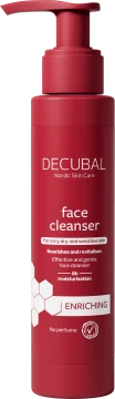 Decubal Enriching Face Cleanser är en näringsgivande ansiktsrengöring som hjälper till att stärka hudbarriären. Cleansern rengör skonsamt, verkar återfuktande och tar bort orenheter utan att torka ut huden. Innehåller ceramider, E-vitamin, C-vitamin och rödalger. Oparfymerad. 150 ml.