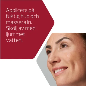 Massera in på fuktig hud. Skölj sedan av med vatten.