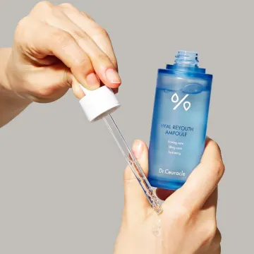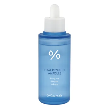 Dr. Ceuracle Hyal Reyouth Ampoule är en ampull med återfuktande gel som kan bidra till att ge huden lyster. Berikad med sex stycken hyaluronsyror med egenskaper som kan bidra med fukt och samtidigt lugna irritation i huden. Innehåller också provitamin B5 och vitamin B3 som har egenskaper som kan bidra till att stärka hudens fuktbarriär och främja en känsla av återfuktad hud samt fructan som är en typ fruktos som har egenskaper som kan främja reproduktion av cellerna i huden. Passar alla hudtyper. 50 ml.