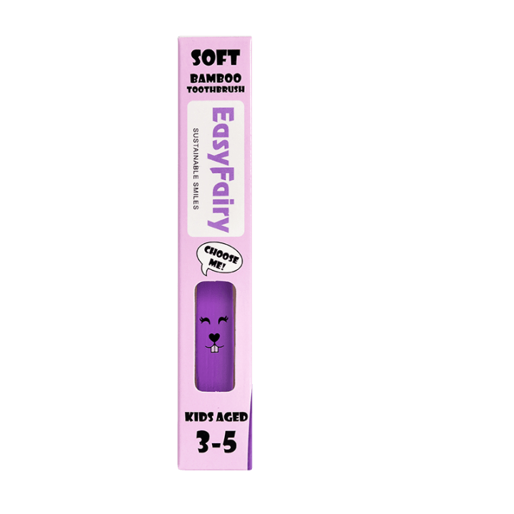 EasyFairy Bambutandborste är en tandborste för barn i glad och rolig design, med ett skaft tillverkat av snabbväxande bambu och mjuka borststrån i nylon. Tandborsten har ett kortare handtag som passar små händer och ett litet borsthuvud som passar små munnar och tänder. Handtaget är 100% biologiskt nedbrytbart och har en söt design med ett gulligt kaninansikte med ögon, nos och tänder. Passar barn i åldrarna 3–5 år. 1 st.
