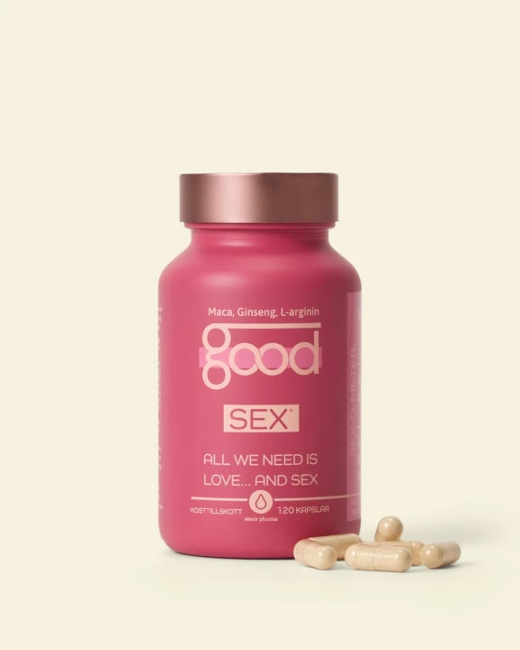 Elexir Pharma Good Sex är ett kosttillskott som innehåller ingredienser som kan bidra till sexuell lust och energi, både för män och kvinnor. Berikat med extrakt från macarot och extrakt från ginseng som har egenskaper som kan bidra till en normal mental och fysisk prestationsförmåga. Innehåller också tiggarnöt och damiana samt aminosyrorna L-arginin och L-citrullin som finns naturligt i kroppen. Kan ätas dagligen eller i perioder. Vegansk. 120 st kapslar. Elexir Pharma uppdaterar successivt sin design. Under en övergångsperiod kan förpackningen därför variera mellan den äldre och den nya designen. Produktens innehåll och kvalitet är oförändrad.