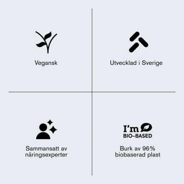 Rekommenderad dos bör inte överskridas. Bör inte användas som ett alternativ till en varierad och balanserad kost och en hälsosam livsstil. Förvaras torrt i rumstemperatur, ej i direkt solljus. Förvaras alltid utom räckhåll för små barn.