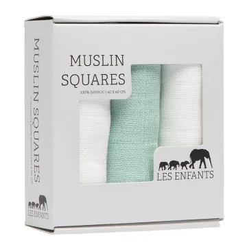 7350101140017Les Enfants Muslin Squares 3-pack Grön/Vit