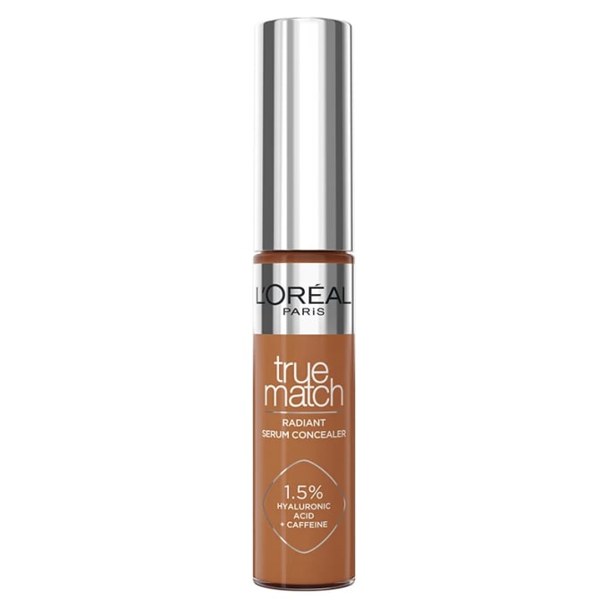 L'Oréal Paris True Match Radiant Serum Concealer har mediumhög täckningsgrad. Concealern hjälper till att neutralisera mörka ringar och minskar synligheten av påsar under ögonen. Med färgkorrigerande pigment och aktiva ingredienser som 1,5% hyaluronsyra och koffeinkomplex som förser huden med ökad fukt och lyster. Concealern har en lätt formula som är enkel att applicera och tona ut tack vare applikatorns unika form. Täpper inte till porerna. Passar alla hudtyper, även torr och känslig hud. Oparfymerad. 11 ml.