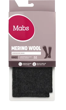 Mabs Wool Knee Black är en varm och mjuk stödstrumpa i skönt material med hög andel merinoull och kompressionsklass 1 (15–21 mmHg). Merinoullen värmer skönt utan att klia och passar perfekt för personer med frusna fötter eller vid utomhusaktiviteter. Strumpan når upp till knät och har kompressionsklass 1 (15–21 mmHg) som ger god komfort och ett bra stöd i vardagen. Vid långvarigt stillasittande eller stående kan benen och fötterna bli svullna och kännas tunga, spända och trötta. Även graviditet, övervikt och flygresor kan orsaka svullna fötter och ben. Genom att använda en kompressionsstrumpa ökar blodflödet i benen så att de känns pigga och starka hela dagen, oavsett du står går eller sitter mycket. Strumporna hjälper även till att motverka åderbråck. 1 par. Medicinteknisk produkt, läs bipacksedeln noga innan användning. Medicinska kompressionsstrumpor erbjuder kompressionsterapi med medicinsk kompression klass I som har en vetenskapligt bevisad effekt. För att välja rätt storlek och för att passformen ska bli perfekt finns det tre mått att utgå från: 1) Omkretsen runt ankeln där den är som smalast (A). 2) Omkretsen runt vaden där den är som bredast (B). 3) Din skostorlek (C). • Storlek S: Omfång ankel: 17–20 cm (A), Omfång vad: 27–32 cm(B), Skostorlek: 36–38 (C), Strumpans längd: 27 cm • Storlek M: Omfång ankel: 19–22 cm (A), Omfång vad: 29-35 cm(B), Skostorlek: 38-40 (C), Strumpans längd: 29 cm • Storlek L: Omfång ankel: 20–24 cm, Omfång vad: 32–38 cm, Skostorlek: 40–42 (C), Strumpans längd: 31 cm • Storlek XL: Omfång ankel: 22–26 cm, Omfång vad: 34–40 cm, Skostorlek: 43–44 (C), Strumpans längd: 33 cm • Storlek XXL: Omfång ankel: 24–28 cm, Omfång vad: 37–44 cm, Skostorlek: 44–47 (C), Strumpans längd: 35 cm