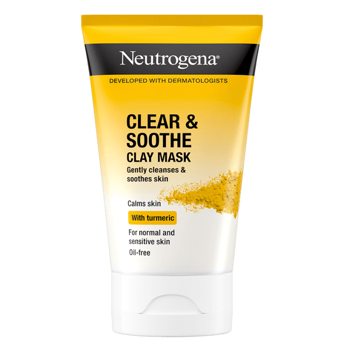 Neutrogena Clear & Soothe Clay Mask är en lermask som absorberar överflödig olja och fett, som kan vara orsaken till finnar. Lermasken hjälper till att bevara hudens naturliga fuktbalans och passar stressad hud som är i behov av återfuktning. Ansiktsmasken lugnar samt verkar för att balansera huden. Innehåller gurkmeja och har en oljefri formula som inte lämnar fläckar. Passar fet hud. 50 ml.