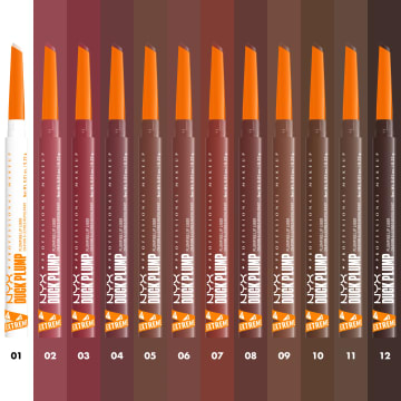 NYX Professional Makeup Duck Plump Lip Liner är en läppenna som ger läpparna ett fylligt intryck, definition och volym. Berikad med ingefära och chili som hjälper till att öka blodcirkulationen i läpparna och ger en fyllig känsla som håller hela dagen. Med en vinklad spets som ger extra god precision för en enkel applicering. Använd den spetsiga änden för att markera läpparnas konturer, och den platta änden för att fylla läpparna i och tona ut färgen. Finns i flera nyanser som nude, rosa, rött och brunt och kan användas för både neutral och mer dramatisk makeup. Vegansk. 0,3 g.