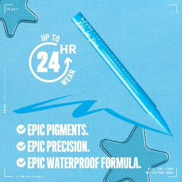 NYX Professional Makeup Epic Ink Waterproof Eyeliner Pencil är en vattenfast flytande eyeliner med en smal och flexibel penselspets som ger en exakt applicering. Eyelinern är högpigmenterad och de intensiva pigmenten glider lätt över huden och ger en täckande linje i ett svep. Penseln kan ge både tunna och breda linjer tack vare den flexibla spetsen. Vattenfast formula som håller i upp till 24 timmar efter applicering. Finns i flera nyanser med och utan glitter. 1 ml.