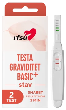 RFSU Graviditetstest Stav är ett lättanvänt test som ger ett resultat efter 3 minuter samma dag som du väntar din mens. Kissa direkt på stickan så visar ett tydligt resultat med ett eller två streck. Testets känslighet är 254 mlU/ml av hormonet hCG i urinet. Testet är över 99% tillförlitligt från och med den dagen du väntar din mens. Du kan testa när som helst under dygnet men säkrast är morgonurinen, då hCG-koncentrationen är som högst. Förpackningen innehåller 2 stavar.