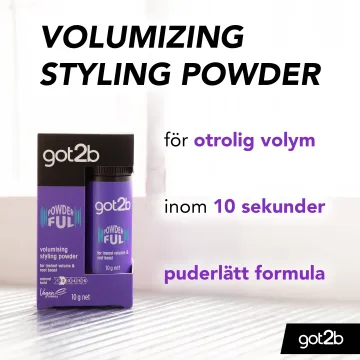 Schwarzkopf Got2b Volumizing Powder är ett volympuder som ger håret omedelbar och långvarig volym från rötterna. Den har en puderlätt formula och gör håret enkelt att forma. 10 ml.
