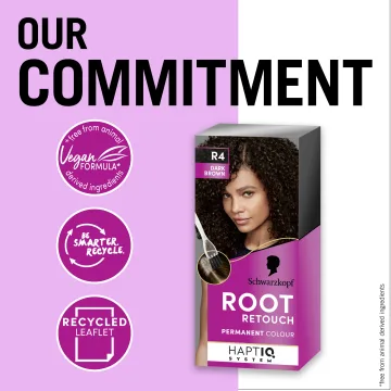 Schwarzkopf Rootkit är en permanent hårfärgningskit för snabb utväxtbehandling. Behandlingen kan med fördel användas mellan två färgningar och ger 100% gråhårstäckning. Den kompakta borsten möjliggör exakt applicering av hårfärgen för jämnt färgad utväxt fram till nästa färgning. Det medföljande balsamet med HaptIQ-systemet hjälper till att vårda håret genom att skapa nya mikrobindningar, omsluta håret med ett skyddande lager efter färgning samt återställa styrkan i håret. Vegansk.
