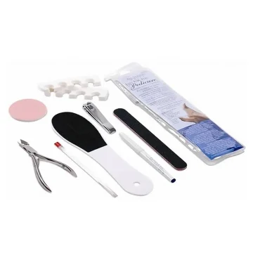 Scratch Just for You Pedicure Kit är ett pedikyrkit med allt du behöver för fotvård hemma. Låter dig enkelt hålla fötter och tånaglar fräscha och förberreda tånaglarna inför applicering av nagellack. Pedikyrkitet innehåller: Fotfil Nagelbandstång Nagelknipser Nagelfil Rundfil Tåseparator Plastic pusher Cuticle oil