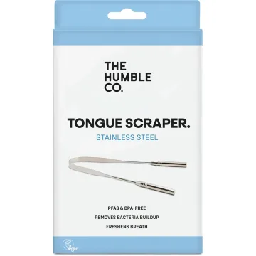 The Humble Co. Stainless Steel Tongue Scraper är en tungskrapa som är tillverkad av 100% rostfritt stål. Användning av tungskrapa hjälper till att fräscha upp andedräkten och bidrar till bättre munhälsa. Lätt att rengöra. Levereras i en återvinningsbar pappersförpackning. 1st.