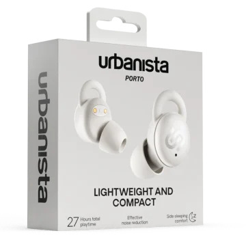 Urbanista Porto är ett par trådlösa in-ear-hörlurar som kombinerar ett detaljrikt ljud och en design framtagen för avslappning. Hörlurarna har en följsam och tunn design som gör att de är bekväma att använda när du ligger ner utan att störa mot kudden. Perfekt för nattliga ljudböcker, sömnmeditation eller bara tyst vila med favoritlåtarna i öronen. Urbanista Porto har dubbla mikrofoner med vindskydd och 6 timmar batteritid. Med 6 mm PEEK-element, Sleep-Friendly™-design och Bluetooth 5.3 och passiv brusreducering levererar Porto både musikalisk närvaro och fysisk diskretion.