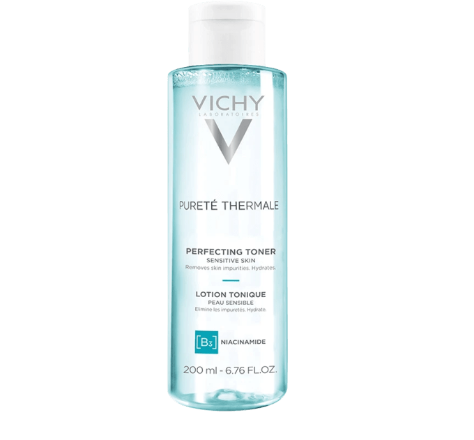Vichy Pureté Thermale Toner är ett ansiktsvatten som effektivt avlägsnar orenheter och de sista makeupresterna. Innehåller lugnande thermalskt källvatten och niacinamid som ger en ren och fräsch känsla. Speciellt lämplig för känslig hud. Applicera varje morgon och/eller kväll med en bomullsrondell. Skölj inte av. Dermatologiskt testad. Fri från parabener och alkohol. Hypoallergen. Parfymerad. 200 ml.